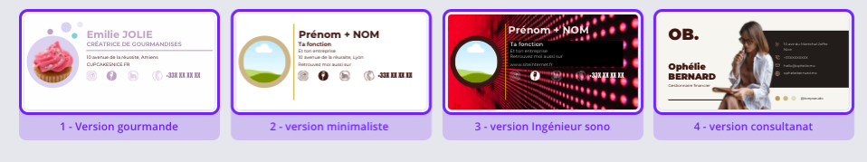 4 templates personnalisables